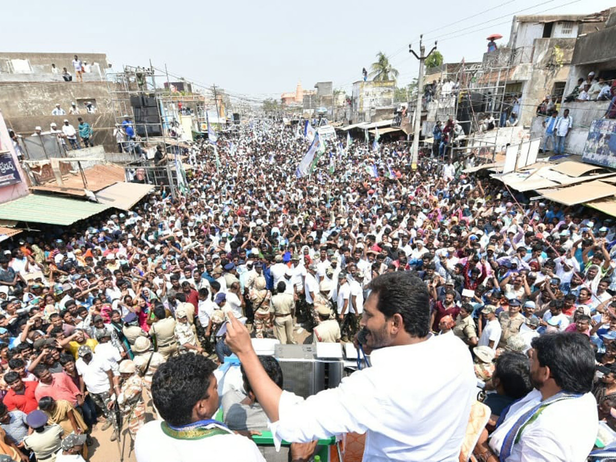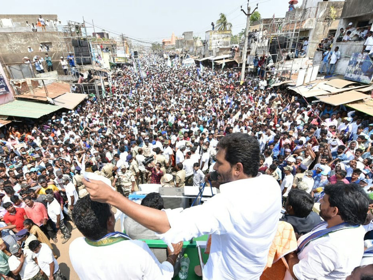 ఎన్నికల ప్రచారంలో భాగంగా శనివారం ప్రతిపక్షనేత, వైఎస్సార్ కాంగ్రెస్పార్టీ అధ్యక్షుడు వైఎస్ జగన్మోహన్ రెడ్డి శ్రీకాకుళం జిల్లా పలాసలో నిర్వహించిన బహిరంగ సభలో కార్యకర్తలను ఉద్దేశించి ప్రసంగించారు.