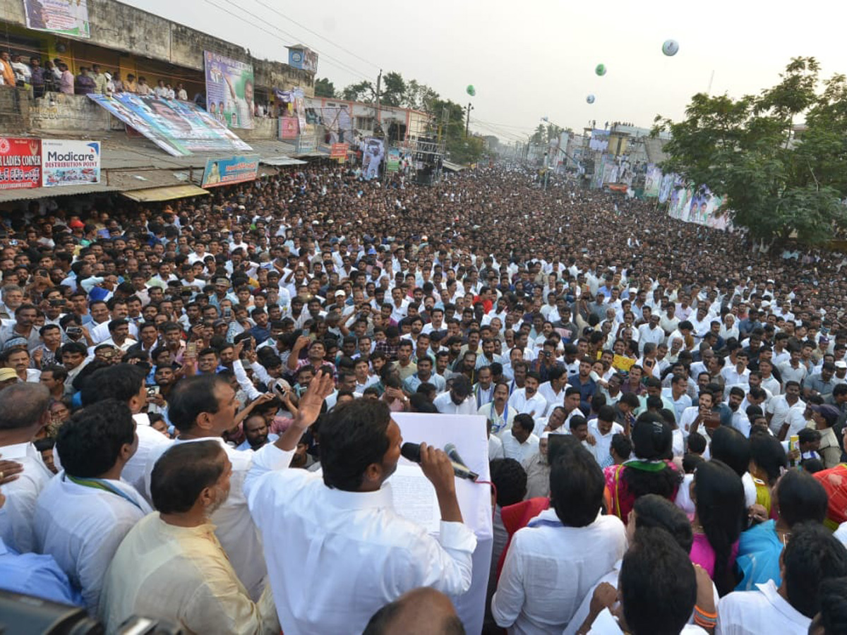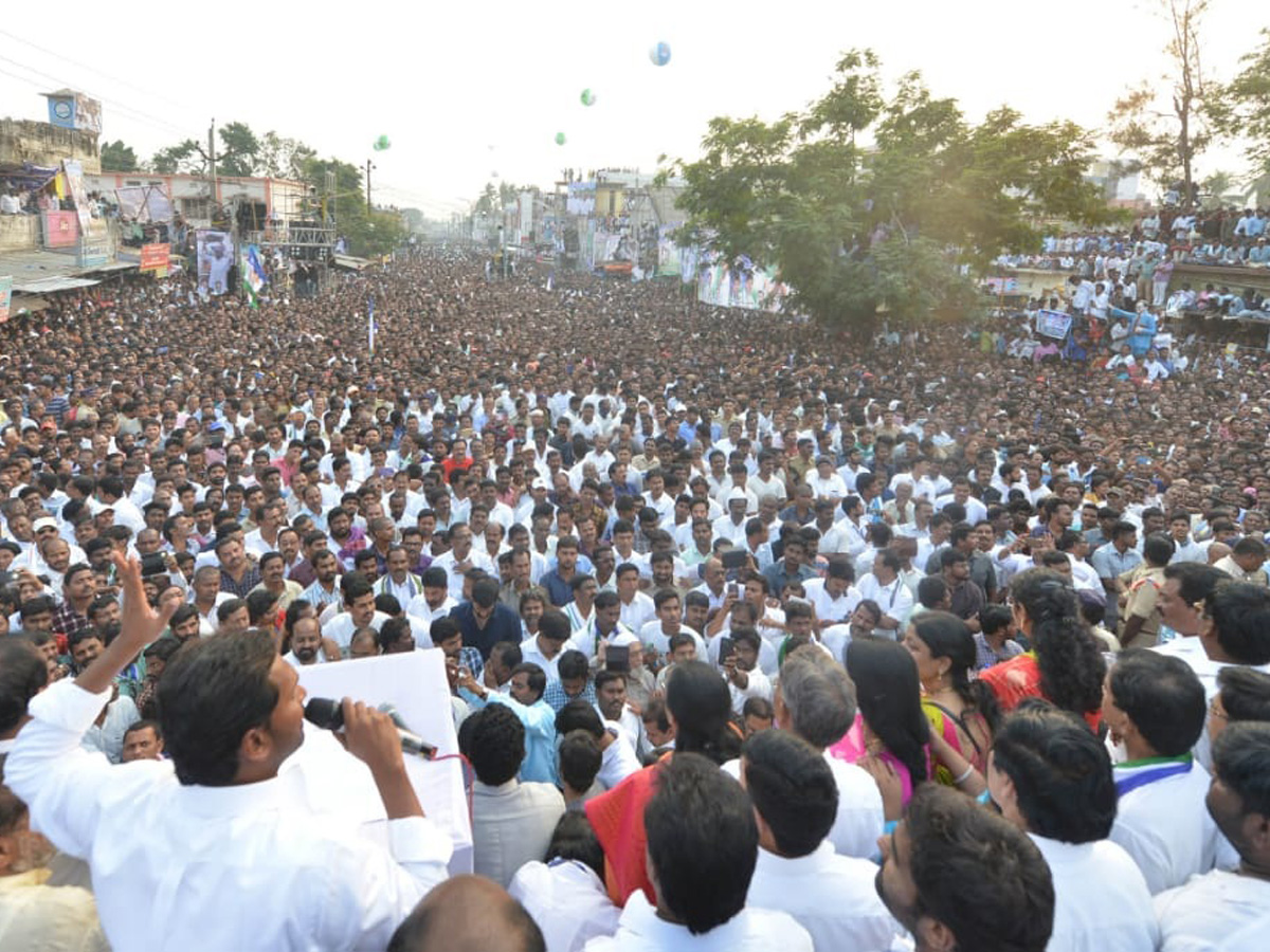 చరిత్రాత్మక ప్రజాసంకల్పయాత్ర ముగిసిన సందర్భంగా ఇచ్ఛాపురం పాత బస్టాండ్ వద్ద బహిరంగ సభలో వైఎస్ జగన్మోహన్ రెడ్డి ప్రజలను ఉద్దేశించి ప్రసంగిస్తున్నారు..