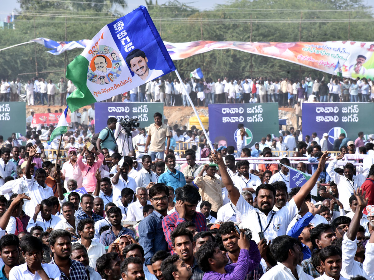 ఏపీ ప్రతిపక్ష నేత, వైఎస్సార్ కాంగ్రెస్ పార్టీ అధ్యక్షుడు వైఎస్ జగన్మోహన్ రెడ్డి సార్వత్రిక ఎన్నికల సమర శంఖాన్ని పూరించారు. రేణిగుంట సమీపంలో బుధవారం యోగానంద ఇంజనీరింగ్ కళాశాల మైదానంలో ఏర్పాటు చేసిన ‘సమర శంఖారావం’ బహిరంగ సభలో ఆయన మాట్లాడారు.