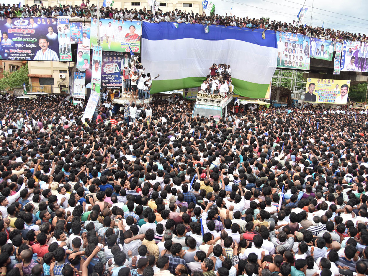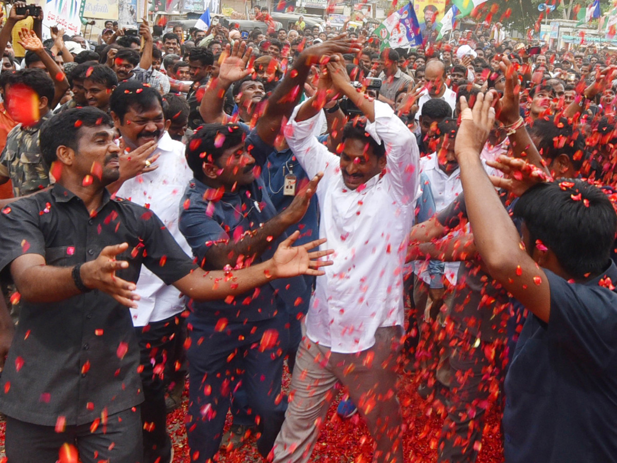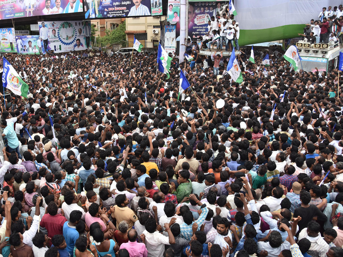 తూర్పుగోదావరి జిల్లా తునిలో అడుగు పెట్టిన జననేత వైఎస్ జగన్కు ప్రజలు, పార్టీనేతలు, కార్యకర్తలు అపూర్వ స్వాగతం పలికారు. పూల దండలతో ఎదురేగి రాజన్న తనయుడిని ఆహ్వానించారు.పెద్దఎత్తున తరలివచ్చిన జనంతో రోడ్లన్ని కిక్కిరిశాయి. రాజన్న తనయుడిని చూసేందుకు వేలాది అభిమానులు భవనాలపైకి చేరుకున్నారు. రహదారుల వెంట ఎటుచూసినా జనమే కనిపించారు. దీంతో తుని పట్టణం జనసాగరాన్ని తలపించింది.