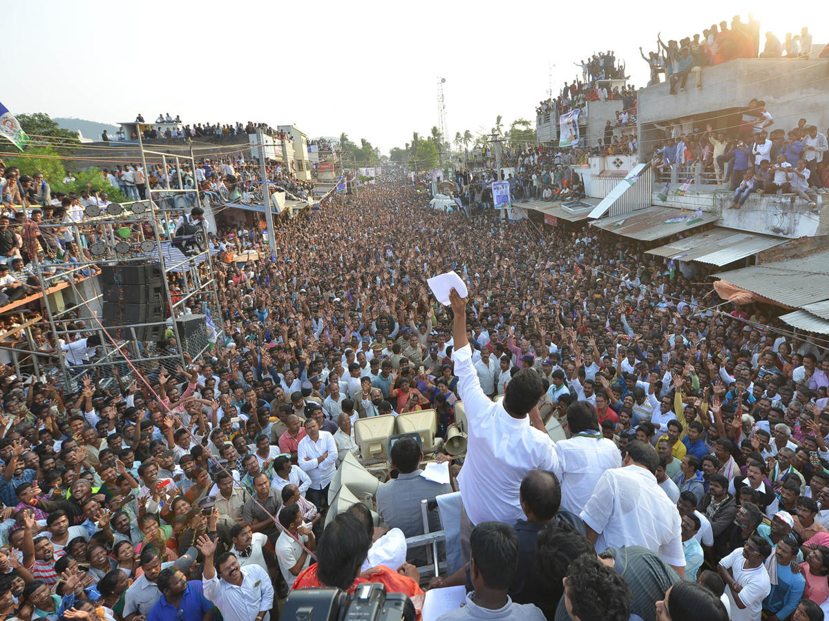 330వ రోజు ప్రజాసంకల్పయాత్రలో భాగంగా సోమవారం వైఎస్ జగన్ శ్రీకాకుళం జిల్లా మెళియపుట్టిలో జరిగిన బహిరంగ సభలో ప్రసంగించారు.