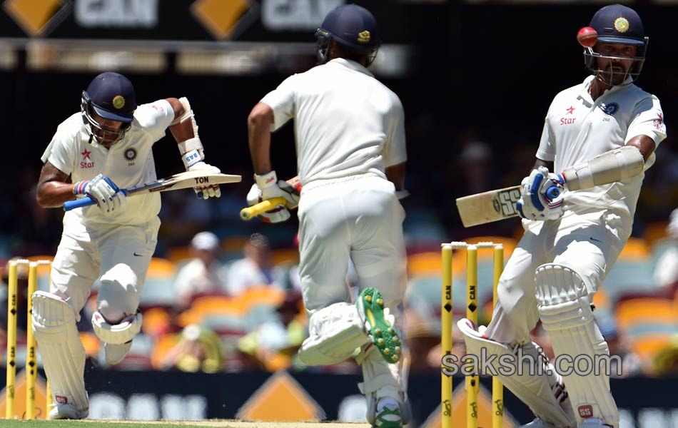 బ్రిస్బెన్: భారత్, ఆస్ట్రేలియా జట్ల మధ్య జరుగుతున్న రెండో టెస్ట్ మొదటి ఇన్నింగ్స్లో తొలిరోజు ఆట ముగిసే సరికి భారత్ 83 ఓవర్లలో నాలుగు వికెట్ల నష్టానికి 311 పరుగులు చేసింది. టాస్ గెలిచి బ్యాటింగ్కు దిగిన భారత్ దూకుడుగా ఆడింది. రెహానే 75, రోహిత్ శర్మ 26 పరుగులతో నాటౌట్గా క్రీజ్ లో ఉన్నారు. ఓపెనర్ విజయ్ మురళీ 144, శిఖర్ థావన్ 24, పుజరా 18, కోహ్లీ 19 పరుగులు చేశారు.