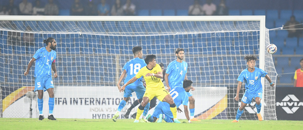 గచ్చిబౌలిలోని జీఎంసీ బాలయోగి స్టేడియంలో సోమవారం భారత్, మలేసియా జట్ల మధ్య జరిగిన అంతర్జాతీయ ఫుట్బాల్ సమాఖ్య (ఫిఫా) స్నేహపూర్వక అంతర్జాతీయ మ్యాచ్ 1–1 గోల్స్తో ‘డ్రా’గా ముగిసింది.