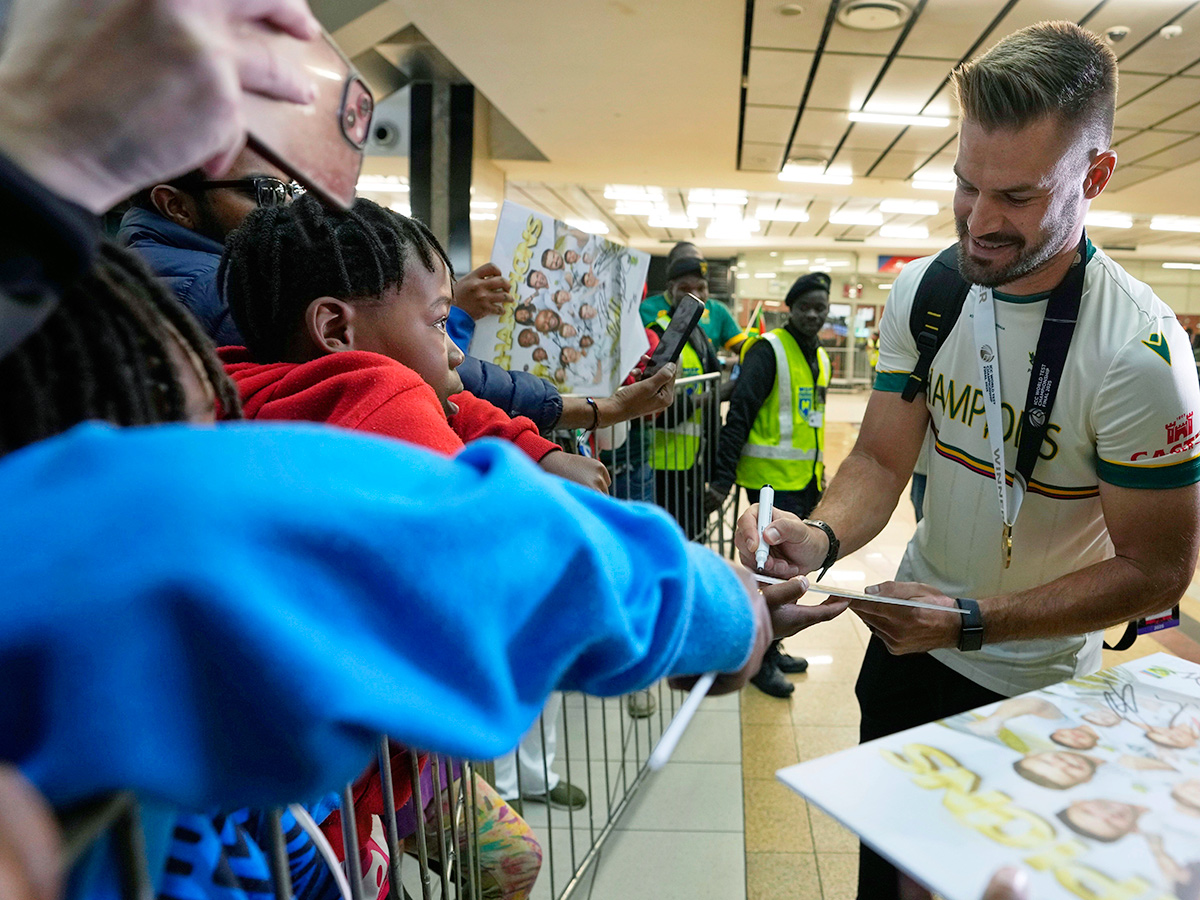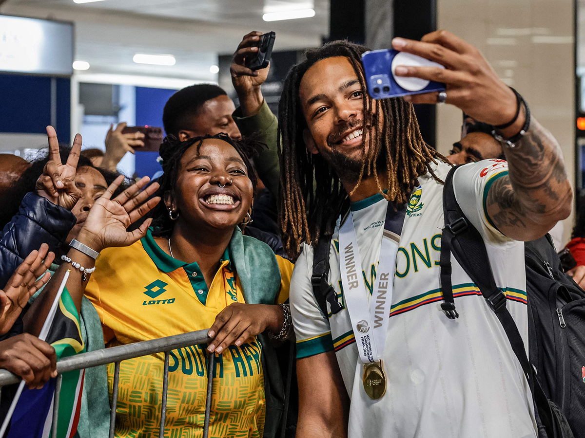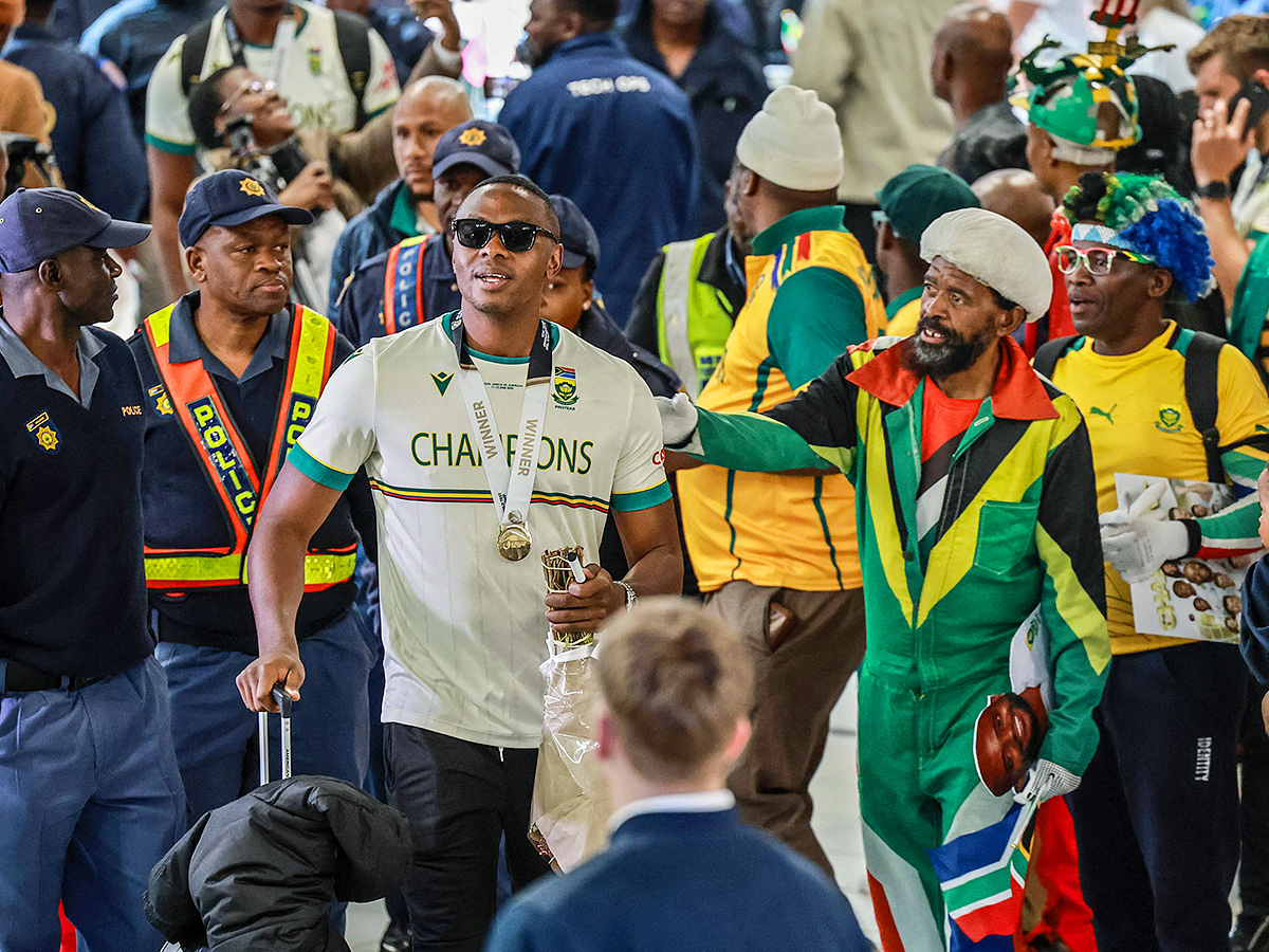 దాదాపు మూడు దశాబ్దాల తర్వాత ఐసీసీ టైటిల్ గెలిచిన బవుమా సేనకు స్వదేశంలో ఘన స్వాగతం లభించింది. దీనికి సంబంధించిన ఫోటోలు వైరలవుతున్నాయి.