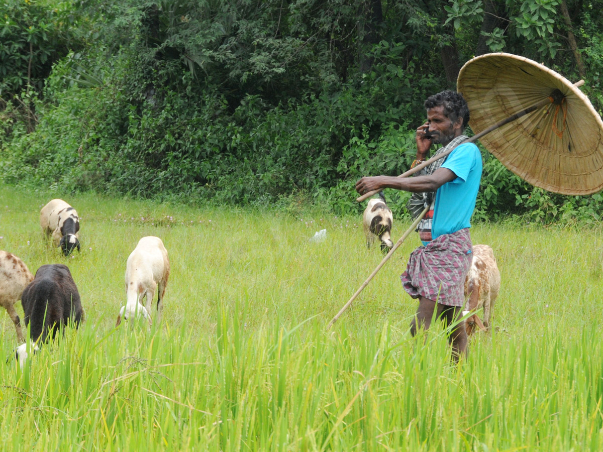 సెల్ మోహన్ రంగా.. : మేకలను కాస్తూ ఫోన్ మాట్లాడుతున్న యజమాని ఫొటో: సత్యనారాయణ, విజయనగరం