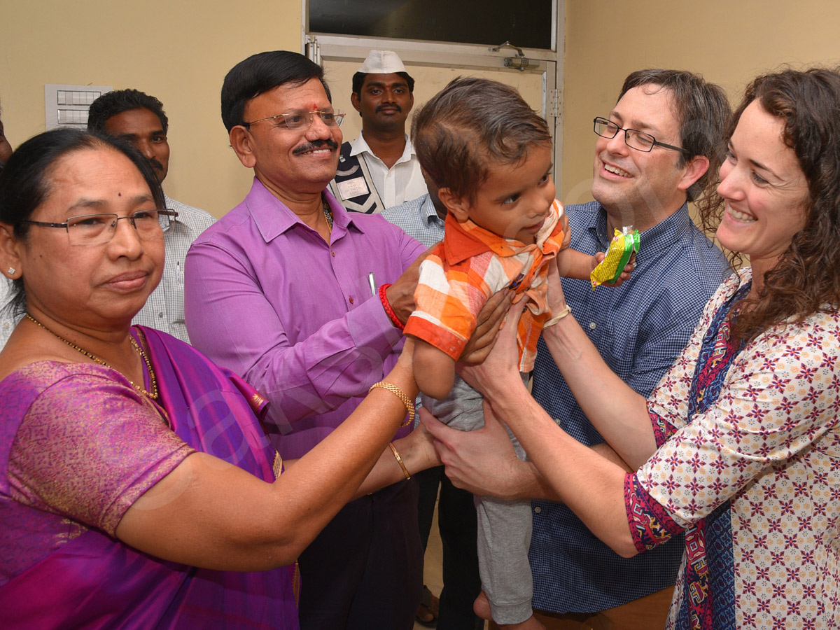 దివ్యాంగ బాలుడిని అమెరికావాసులకు అందజేస్తున్న కలెక్టర్ లక్ష్మీకాంత ఫొటో: అజీజ్, మచిలీపట్నం