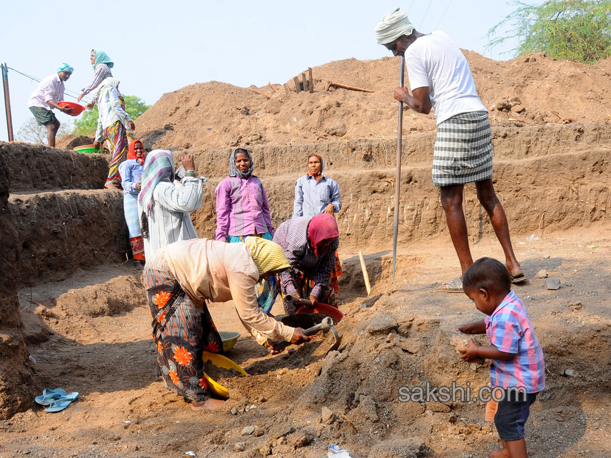ఉపాది హామి పనిలో తల్లికి చిన్నారి సహాయం..(ఫోటో: శ్రీనివాస్, కర్నూలు)