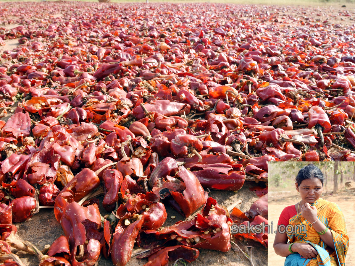 రాళ్ల వానకు ఎండు మిర్చి పగిలే.. అది చూసి రైతు గుండె అదిరే..( ఫోటో: సంపత్ గౌడ్, జయశంకర్ భూపాలపల్లి)
