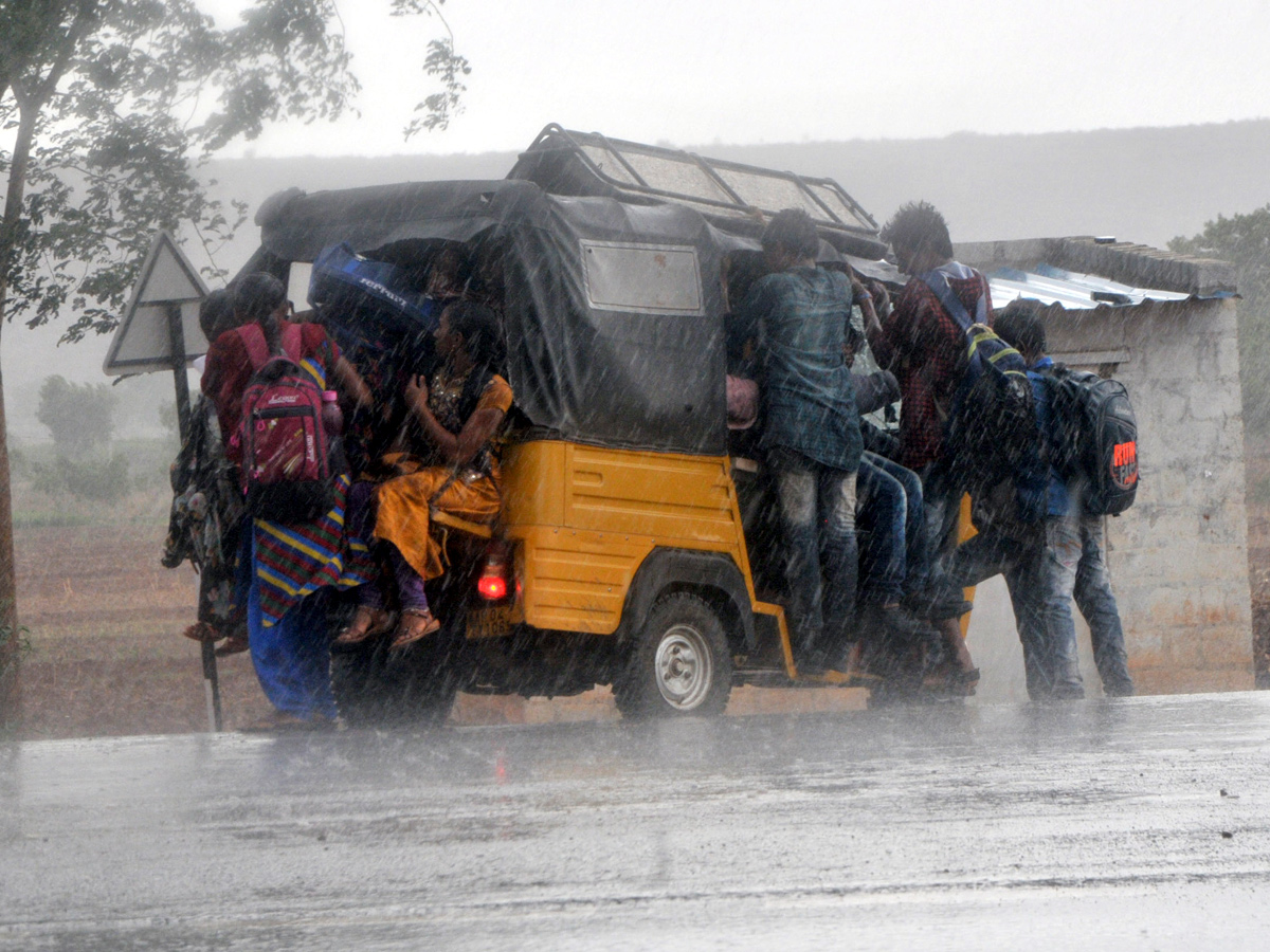 వాన వస్తోంది.. అందుకే కిక్కిరిసి వెళ్తున్నాం.. (ఫోటో : రమేశ్ , కడప)