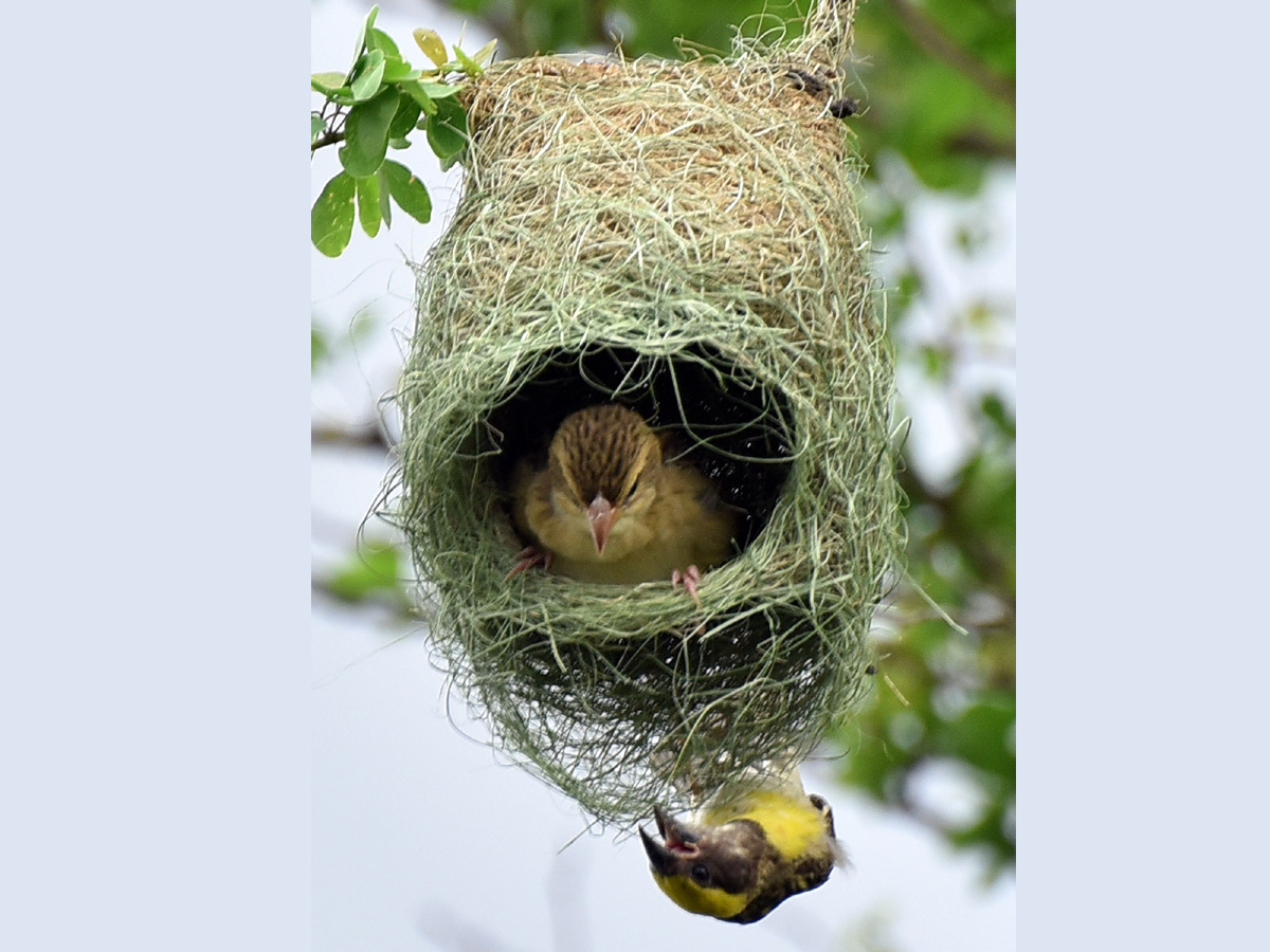 అమ్మా.. మన గూడు కింది భాగంలో గడ్డి దట్టంగా పేర్చు.. (ఫోటో: అజీజ్,మచిలిపట్నం)