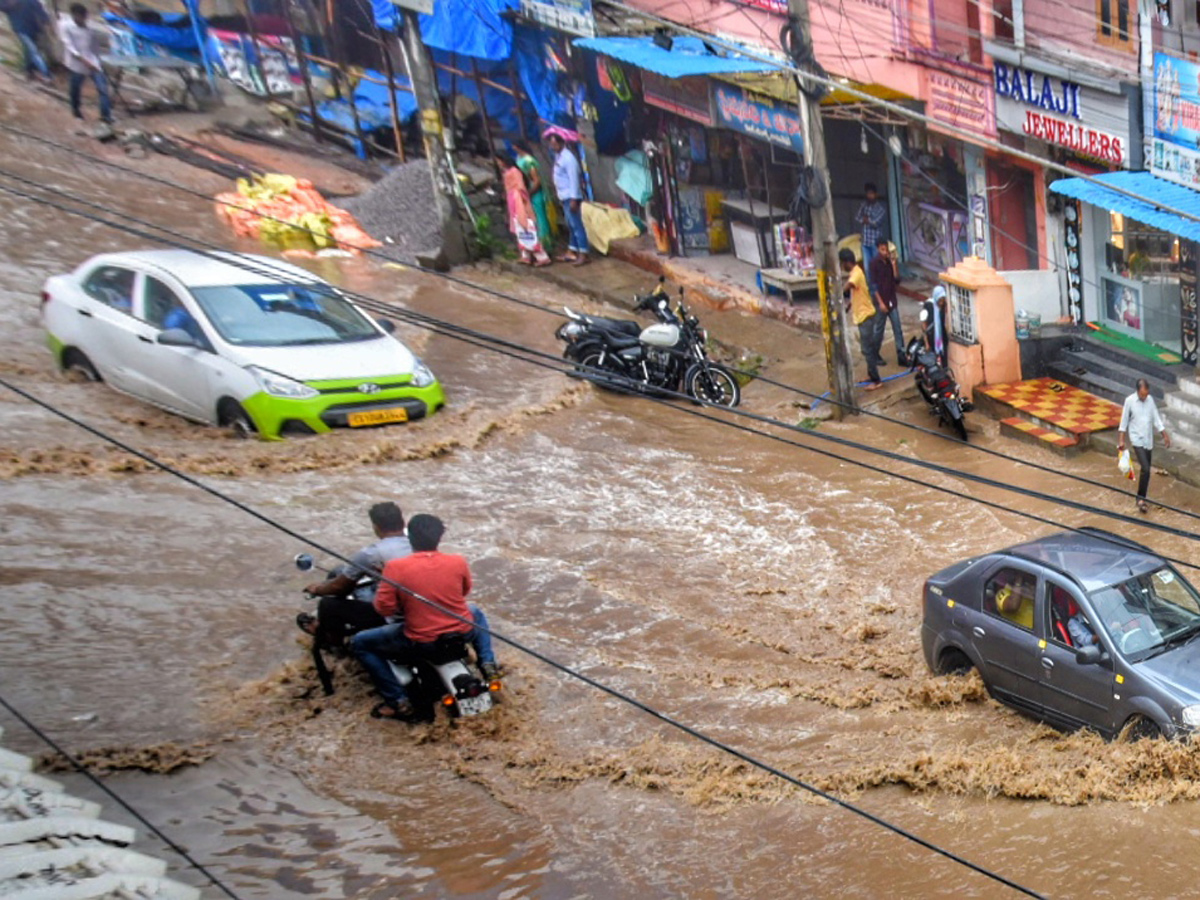 వరద నీటిపై ఎదురీదుతాం.. మా గమ్యాన్ని చేరుకుంటాం.. (ఫోటో: సాయి దత్త, హైదరాబాద్)