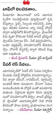 పీయూనూ తెలంగాణలో టాప్ యూనివర్సిటీగా నిలబెట్టేందుకు పూర్తిస్థాయిలో కృషి చేస్తున్నాం. ఫైల్స్, సిబ్బంది అటెండెన్స్, విద్యార్థుల తదితర వివరాలు అన్ని సమర్థ్ పోర్టల్ ద్వారా ఆన్లైన్లోకి తీసుకొస్తున్నాం.