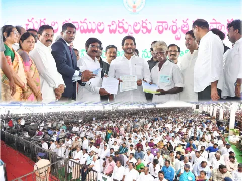 సాక్షి ప్రతినిధి, ఏలూరు: దశాబ్దాలుగా సాగు చేసుకుంటున్న భూములపై పేదలకు సర్వ హక్కులు కల్పింస్తోంది మీ బిడ్డ ప్రభుత్వమేనని ముఖ్యమంత్రి వైఎస్ జగన్మోహన్రెడ్డి పేర్కొన్నారు. పేదలు, రైతుల గుండె చప్పుడు విన్నది కాబట్టే మనందరి ప్రభుత్వం దేశ చరిత్రలో కనీవినీ ఎరుగని విధంగా వారికి భూములపై పూర్తి హక్కులు కల్పిస్తూ మనస్ఫూర్తిగా మంచి చేస్తోందన్నారు. రాష్ట్రవ్యాప్తంగా 35,44,866 ఎకరాలకు సంబంధించి 20,24,709 మంది పేదలకు హక్కులు కల్పించి ఆ భూములను మీ బిడ్డ ప్రభుత్వం వారి చేతుల్లో పెడుతోందన్నారు. మనందరి ప్రభుత్వంలో సామాజిక న్యాయమన్నది ఒక నినాదంగా కాకుండా ఒక విధానంగా అమలు చేస్తున్నామని చెప్పారు. పేద వర్గాలను అక్కున చేర్చుకుని సామాజిక, ఆర్థిక న్యాయం చేయగలిగామన్నారు. ప్రతి పేదవాడు కాలర్ ఎగరవేసి అదిగో మా అన్న ప్రభుత్వం.. మా ప్రభుత్వం.. మా కోసం ఆలోచన చేసేవాడు ఒకడు ఉన్నాడు అని చెప్పుకునే విధంగా పాలన సాగిందని చెప్పేందుకు గర్విస్తున్నట్లు తెలిపారు. రాష్ట్రవ్యాప్తంగా 46,463.82 ఎకరాల భూమిని 42,307 మందికి కొత్తగా డీకేటీ పట్టాలు పంపిణీ చేసే గొప్ప కార్యక్రమానికి శ్రీకారం చుట్టామన్నారు. దశాబ్దాలుగా అనుభవదారులుగా ఉన్న పేద రైతులకు అసైన్డ్ భూములపై హక్కులు కల్పించడంతోపాటు చుక్కల భూముల సమస్యకు సైతం పరిష్కారాన్ని చూపామన్నారు. దళితుల శ్మశాన వాటికల కోసం 1,563 గ్రామాల్లో 951 ఎకరాలను కేటాయిస్తున్నట్లు తెలిపారు. 2003 నాటి అసైన్డ్ భూములపై హక్కులు, కొత్తగా డీకేటీ పట్టాలను అందిస్తూ పేదలకు వెన్నుదన్నుగా నిలుస్తుంటే పెత్తందారులకు నచ్చడం లేదని మండిపడ్డారు. పేద వర్గాల పట్ల బాధ్యతగా, చిత్తశుద్ధితో వ్యవహరిస్తుంటే ప్రతిపక్షం కుట్రలకు పాల్పడుతోందని విమర్శించారు. రాష్ట్రంలో నిరుపేదలకు భూ పంపిణీ, అసైన్డ్ భూములపై యాజమాన్య హక్కులు, లంక భూములకు పట్టాలు, చుక్కల భూములు, షరతు గల పట్టా భూములు, సర్వీస్ ఈనాం భూములు 22 (ఏ) నుంచి తొలగింపు, భూమి కొనుగోలు పథకం ద్వారా అందించిన భూములపై హక్కుల కల్పన, గిరిజనులకు ఆర్వోఎఫ్ఆర్ పట్టాల పంపిణీ కార్యక్రమానికి శ్రీకారం చుడుతూ శుక్రవారం ఏలూరు జిల్లా నూజివీడులో నిర్వహించిన బహిరంగ సభలో ముఖ్యమంత్రి జగన్ మాట్లాడారు. భూములకు సంబంధించి కేవలం 53 నెలల వ్యవధిలో తీసుకున్న తొమ్మిది రకాల విప్లవాత్మక నిర్ణయాలతో పేదలు, రైతన్నలకు చేకూర్చిన మేలును వివరిస్తూ ఆయా అంశాలను సీఎం జగన్ ప్రస్తావించారు. నిర్ణయం1 దేశంలో వందేళ్ల తరువాత మన ప్రభుత్వ హయాంలో భూముల రీసర్వే కార్యక్రమాన్ని నిర్వహిస్తున్నాం. ఇప్పటికే రెండు దశల్లో నాలుగు వేల గ్రామాల్లో భూముల రీ సర్వే విజయవంతంగా పూర్తి చేశాం. మొత్తంగా 42.60 లక్షల ఎకరాల్లో రీసర్వే పూర్తై యజమానులకు భూ హక్కు పత్రాలను కూడా అ