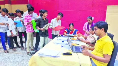 ఏలూరు టౌన్: ఉమ్మడి పశ్చిమగోదావరి జిల్లా పోలీస్ శాఖలో కానిస్టేబుళ్లుగా ఎంపికై న అభ్యర్థులు శిక్షణకు వెళ్తున్న నేపథ్యంలో జిల్లా పోలీస్ ప్రధాన కార్యాలయ సమీపంలోని పోలీస్ కల్యాణ మండపంలో అభ్యర్థుల సర్టిఫికెట్ల తనిఖీ నిర్వహించారు. జిల్లా ఎస్పీ కొమ్మి ప్రతాప్ శివకిషోర్ ఆదేశాల మేరకు సిబ్బంది ప్రత్యేకంగా ఏర్పాటు చేసిన కౌంటర్లలో దరఖాస్తులు పూర్తిచేసి, సర్టిఫికెట్లు పరిశీలన చేశారు. జిల్లా అదనపు ఎస్పీ నక్కా సూర్యచంద్రరావు కేంద్రాన్ని సందర్శించి సిబ్బందికి సూచనలు చేశారు. కానిస్టేబుల్ అభ్యర్థులకు ఎలాంటి అసౌకర్యం లేకుండా చర్యలు చేపట్టాలని సిబ్బందిని ఆదేశించారు. ఉమ్మడి పశ్చిమగోదావరి జిల్లాకు సివిల్ కానిస్టేబుళ్లుగా 132 మంది పురుష, 61 మంది మహిళా అభ్యర్థులు హాజరయ్యారని, శనివారం ఉదయం 9 గంటలకు ఏలూరు నుంచి శిక్షణకు బయలుదేరి వెళతారని చెప్పారు. -