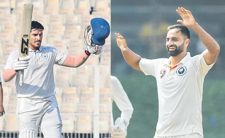 అగర్తలా: త్రిపుర జట్టుకు ప్రాతినిధ్యం వహిస్తున్న తెలుగు క్రికెటర్ హనుమ విహారి శతకాల జోరు కొనసాగిస్తున్నాడు. రంజీ ట్రోఫీ గ్రూప్ ‘సి’లో బెంగాల్తో జరిగిన గత మ్యాచ్లో వీరోచిత శతకంతో త్రిపురకు తొలి ఇన్నింగ్స్ ఆధిక్యం కట్టబెట్టిన విహారి తాజాగా అస్సాంపై కూడా అజేయ సెంచరీతో కదం తొక్కాడు. టాస్ నెగ్గిన అస్సాం ఫీల్డింగ్ ఎంచుకోవడంతో ముందుగా బ్యాటింగ్కు దిగిన త్రిపుర తొలి ఇన్నింగ్స్లో 84 ఓవర్లలో 4 వికెట్ల నష్టానికి 316 పరుగులు చేసింది. ఆరంభంలోనే ఓపెనర్లు హృతురాజ్ రాయ్ (5), కాసేపటికే బిక్రమ్కుమార్ దాస్ (22; 3 ఫోర్లు) వికెట్లను కోల్పోయిన త్రిపురకు విహారి (215 బంతుల్లో 143 బ్యాటింగ్; 17 ఫోర్లు, 1 సిక్స్) ఆపద్భాంధవుడయ్యాడు. వన్డౌన్ బ్యాటర్ శ్రీదమ్ పాల్ (38; 7 ఫోర్లు)తో కలిసి జట్టు స్కోరును వంద పరుగులు దాటించాడు. మూడో వికెట్కు 68 పరుగులు జతయ్యాక శ్రీదమ్ అవుటయ్యాడు. తర్వాత సెంటు సర్కార్ (145 బంతుల్లో 94; 11 ఫోర్లు, 1 సిక్స్) అండతో త్రిపుర ఇన్నింగ్స్ను దుర్బేధ్యంగా మలిచాడు. ఇద్దరు దాదాపు రెండు సెషన్ల పాటు క్రీజులో నిలిచి పరుగులు సాధించారు. దీంతో అస్సామ్ బౌలర్లు ఈ జోడీని విడగొట్టేందుకు అలసిసొలసి పోయారు. ఇదే క్రమంలో విహారి సెంచరీ పూర్తి చేసుకోగా, సెంటు సర్కార్ కూడా శతకదారిలో పడ్డాడు. జట్టు స్కోరు 300 పరుగులు దాటిన తర్వాత దురదృష్టవశాత్తూ సెంటు సర్కార్ 6 పరుగుల తేడాతో సెంచరీ అవకాశాన్ని చేజార్చుకున్నాడు. దీంతో 210 పరుగుల నాలుగో వికెట్ భాగస్వామ్యం ముగిసింది. ఆట నిలిచే సమయానికి విహారి, రాణా దత్త (4 బ్యాటింగ్) క్రీజులో ఉన్నారు. అస్సాం బౌలర్లలో దర్శన్కు 2 వికెట్లు దక్కాయి. ఢిల్లీని కూల్చేసిన ఆఖిబ్ నబి న్యూఢిల్లీ: జమ్మూ కశీ్మర్ సీమర్ ఆఖిబ్ నబి (16–5–35–5) ఢిల్లీ గడ్డపై ఢిల్లీ జట్టును బెంబేలెత్తించాడు. నిప్పులు చెరిగే బౌలింగ్తో సొంతగడ్డపై ఢిల్లీని తొలి ఇన్నింగ్స్లో కనీసం 70 ఓవర్లయిన ఆడకుండా కూల్చేశాడు. గ్రూప్ ‘డి’ పోరులో టాస్ ఓడి ముందుగా బ్యాటింగ్కు దిగిన ఢిల్లీ తొలి ఇన్నింగ్స్లో 69 ఓవర్లలో 211 పరుగులకే ఆలౌటైంది. ఓపెనర్ అర్పిత్ రాణా (0)ను నబి డకౌట్ చేయడంతో మొదలైన ఢిల్లీ పతనం 14 పరుగులకే 3 టాపార్డర్ వికెట్లను కోల్పోయింది. సనత్ (12)ను వంశజ్, యశ్ ధుల్ (1)ను సునీల్ అవుట్ చేశారు. ఈ దశలో కెపె్టన్ ఆయుశ్ బదోని (64; 6 ఫోర్లు), ఆయుశ్ డొసెజా (65; 6 ఫోర్లు, 1 సిక్స్), సుమిత్ మాథ్యూర్ (55 నాటౌట్; 8 ఫోర్లు, 1 సిక్స్) అర్ధసెంచరీలతో ఢిల్లీ ఇన్నింగ్స్ చక్కబెట్టేందుకు ప్రయత్నించారు. కానీ తర్వాత బ్యాటర్లు అనుజ్ (0), హృతిక్ (7), మనన్ (0), సిమర్జీత్ (0), మోని గ్రేవల్ (0) చేతులెత్తేయడంతో ఢిల్లీ కుప్పకూలేందకు ఎంతో సమయం పట్టనే లేదు. కశ్మీరి బౌలర్లలో వంశజ్ శర్మ, అబిద్ ముస్తాక్లకు చెరో 2 వికెట్లు దక్కాయి. శతక్కొట్టిన ముషీర్, సిద్