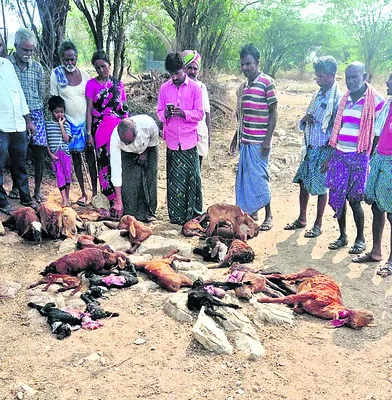 శింగనమల: అధికారాన్ని అడ్డు పెట్టుకుని టీడీపీ నేతలు సాగించిన ఇసుక తవ్వకాలు, అక్రమ తరలింపుల పాపం.. గొర్రెల కాపరుల పాలిట శాపంగా మారింది. వివరాల్లోకి వెళితే.. శింగనమల మండలం సలకంచెరువు గ్రామం వద్ద ఉన్న కూతలేరు వంక నుంచి ఇటీవల టీడీపీ నేతలు యథేచ్ఛగా ఇసుక తరలింపులు చేపట్టారు. ఈ క్రమంలో వంకలో పెద్ద ఎత్తున గోతులు ఏర్పడి అందులో నీరు చేరుకుంది. ఆదివారం మధ్యాహ్నం అటుగా వెళ్లిన గొర్రెలు దాహం తీర్చుకునే క్రమంలో అక్కడకు చేరుకోగానే ఇసుక దిన్నె కుప్పకూలి దాదాపు 25 గొర్రెలు నీటిలోకి పడి మృతి చెందాయి. ఘటనతో రూ.3 లక్షల మేర నష్టం వాటిల్లినట్లు ఇరువెందల గ్రామానికి చెందిన గొర్రెల కాపరి గంగరాజు కన్నీటి పర్యంతమయ్యాడు. ఇసుక గుంతల్లో పడి 25 జీవాల మృతి -