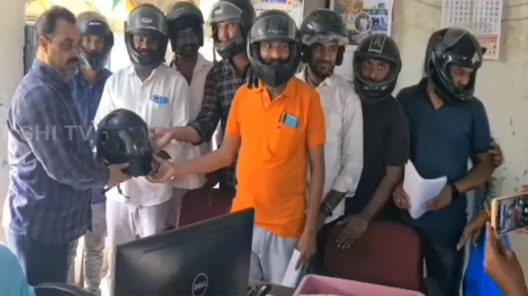 హెల్మెట్ పెట్టుకొని ఆఫీస్ కు వచ్చిన ఉద్యోగులు