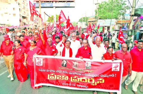 ఎంవీపీకాలనీ: దేశంలో మనువాదాన్ని మరోసారి అమలు చేసేందుకు కుట్ర జరుగుతోందని, భారతావని అనే మానస సరోవరానికి ఆర్ఎస్ఎస్, బీజేపీలు బ్రహ్మరాక్షసులుగా దాపురించాయని సినీనటుడు ప్రకాష్రాజ్ తీవ్రస్థాయిలో ధ్వజమెత్తారు. ఏయూ వేదికగా ‘శ్రామిక ఉత్సవ్’ పేరిట నిర్వహిస్తున్న సీఐటీయూ 18వ అఖిల భారత మహాసభల ప్రారంభోత్సవానికి శనివారం ఆయన ముఖ్యఅతిథిగా హాజరయ్యారు. ఈ సందర్భంగా ప్రకాష్రాజ్ మాట్లాడుతూ.. మత విద్వేషాల ముసుగులో బీజేపీ, ఆర్ఎస్ఎస్లు దేశాన్ని విడదీస్తున్నాయన్నారు. ‘కమలం పువ్వు కింద వేళ్లూనుకుంటున్న ఆర్ఎస్ఎస్ దేశానికి పట్టిన విషం. వందేళ్ల ఉత్సవాలు జరుపుకుంటున్న ఆర్ఎస్ఎస్ నుంచి దేశ స్వాతంత్య్ర ఉద్యమంలో పాల్గొన్న వారు ఒక్కరైనా ఉన్నారా? ఈ వందేళ్లలో వారు చెడ్డీల నుంచి ప్యాంటులకు మారారు తప్ప.. దేశానికి సాధించిందేమీ లేదు.’ అని ఎద్దేవా చేశారు. అమ్ముడుపోయిన మీడియా, ప్రభుత్వం ఉద్యమం అవసరమున్న విశాఖ ప్రాంతంలో సీఐటీయూ మహా సభలు నిర్వహించడం అభినందనీయమని ప్రకాష్ రాజ్ అన్నారు. విశాఖ స్టీల్ప్లాంట్ ప్రైవేటీకరణ విషయంలో ప్రభుత్వంతో పాటు మీడియా కూడా అమ్ముడుపోయిందని ఆరోపించారు. ప్రభుత్వాన్ని నడిపేవారే అమ్ముడుపోతే ప్రజలకు న్యాయం ఏం జరుగుతుందంటూ ప్రశ్నించారు. ప్రభుత్వ వ్యవస్థలన్నీ చాపకింద నీరులా కార్పొరేట్ల చేతుల్లోకి మారుతున్నాయని ఆవేదన వ్యక్తం చేశారు. దాన్ని అడ్డుకోవడానికి నిరంతరం పోరాటం చేయాలని పిలుపునిచ్చారు. ‘నేను నటుడిని మాత్రమే కాదు.. అభ్యుదయ ఆలోచనలకు అండగా ఉండేవాడిని. సిటూ వంటి గొప్ప పోరాట సంఘాలు పిలిస్తే రావ డం నా బాధ్యత. చెమట చుక్కకి ఓటమి లేదంటారు.. కానీ నేడు ఆ చెమట చుక్కకు అన్యాయం జరుగుతోంది.’అని అన్నారు. సిని మాల్లో నటిస్తూ ఆనందంగా ఉన్నప్పటికీ.. సీఐటీయూ మాదిరిగా కార్మికులు, సామాన్యుల గొంతుకగా నిలవడమే తనకిష్టమన్నారు. ప్రజలు రాజకీయం చేయాలి.. పాలకులు పనిచేయాలి ‘ప్రవాహం వెంట వెళ్లి చచ్చిపోయే చేప మాదిరిగా నేను ఉండాలనుకోవడం లేదు.. ప్రవాహానికి ఎదురీదే చేపగా ఉండాలనుకుంటున్నా. అబద్ధం మాట్లాడటానికి ధైర్యం కావాలి.. కానీ నిజం మాట్లాడటానికి కాదు’అంటూ ఆయన కార్మికుల్లో స్ఫూర్తి నింపారు. ప్రజలు రాజకీయం చేయాలని, పాలకులు పనిచేయాలని, కానీ మన దగ్గర అది రివర్స్ అయ్యిందని వ్యాఖ్యానించారు. అనంతరం సీఐటీయూ రాష్ట్ర అధ్యక్షుడు, మాజీ ఎమ్మెల్యే ఎం.ఎ.గఫూర్, రాష్ట్ర ప్రధాన కార్యదర్శి సీహెచ్ నరసింగరావు మహాసభలను ఉద్దేశించి ప్రసంగించారు. కార్యక్రమంలో ఆలిండియా సీఐటీయూ నాయకుడు కందారపు మురళీ, జిల్లా కార్యదర్శి ఆర్.వి.ఎస్.కె. కుమార్, కె.రమాప్రభ తదితరులు పాల్గొన్నారు. ఆకట్టుకుంటున్న ప్రదర్శనలు సీఐటీయూ మహాసభల్లో భాగంగా ఏర్పాటు చేసిన సాంస్