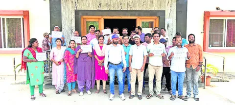 కై లాస్నగర్: తమ గ్రామ ఉపసర్పంచ్ ఎన్నిక ప్రజాస్వామ్యయుతంగా జరగలేదని తాంసి మండలంలోని కప్పర్ల పంచాయతీ వార్డుమెంబర్లు ఆరోపించారు. ఆదివారం నిర్వహించిన ఎన్నికల్లో గెలుపొందిన పలువురు వార్డుమెంబర్లు సోమవారం డీపీవో రమేశ్ను ఆయన కార్యాలయంలో కలిసి దీనిపై ఫిర్యాదు చేశారు. గ్రామంలో 12 వార్డులుండగా ఉపసర్పంచ్గా గెలిచిన అభ్యర్థికి కేవలం ఐదుగురు సభ్యుల మద్దతు మాత్రమే ఉందన్నారు. మిగతా ఏడుగురు సభ్యుల ప్రమేయం లేకుండా ఉపసర్పంచ్ ఎన్నిక నిర్వహించారని ఆరోపించారు. వార్డు మెంబర్లందరి సమక్షంలోనే ఉపసర్పంచ్ ఎన్నిక జరపాలని డిమాండ్ చేశారు. లేనిపక్షంలో తాము ప్రమాణస్వీకారం చేయమని, అవసరమైతే మూకుమ్మడి రాజీనామా చేస్తామని తెలిపారు. డీపీవోను కలిసిన వారిలో వార్డు సభ్యులు సంగీత, అర్చన, వనిత, అనసూయ, షేక్ లతీఫ్, రమేశ్, శ్రీకాంత్ ఉన్నారు. -