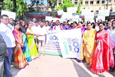 వరంగల్ అర్బన్: డీ స్లడ్జింగ్ ఆపరేటర్లు,సెప్టిక్ ట్యాంక్ వర్కర్లు ‘నమస్తే (నేషనల్ యాక్షన్ ఫర్ మెకనైడ్జ్ శానిటేషన్ ఏకో సిస్టిమ్)ను సద్వియోగం చేసుకోవాలని గ్రేటర్ వరంగల్ మేయర్ గుండు సుధారాణి సూచించారు. బల్దియా ప్రధాన కార్యాలయంలో బుధవారం ‘నమస్తే’ కార్యక్రమంపై ఏర్పాటు చేసిన అవగాహన కార్యక్రమంలో మేయర్ మాట్లాడుతూ.. మల వ్యర్థాలు నిర్వహించే సిబ్బందికి ఈకార్యక్రమం ఎంతో ఉపయోగపడుతుందన్నారు. ప్రతీ మూడు నెలలకోసారి సెప్టిక్ ట్యాంకుల డీ–స్లడ్జింగ్ తప్పనిసరిగా చేపట్టేలా షెడ్యూల్ రూపొందిస్తున్నట్లు చెప్పారు. సెప్టిక్ ట్యాంక్ ఆపరేటర్లు టోల్ ఫ్రీ నంబర్ 11420పై ప్రజల్లో చైతన్యం కలిగించాలని కోరారు. కార్యక్రమంలో సీఎంహెచ్ఓ రాజారెడ్డి, ఎంహెచ్ఓ రాజేశ్, ఆస్కీ ప్రతినిధి డాక్టర్ రాజ్మోహన్, శానిటరీ సూపర్వైజర్లు, శానిటరీ ఇన్స్పెక్టర్లు తదితరులు పాల్గొన్నారు. ప్లాంట్ ఏర్పాటు వేగం చేయండిగ్రేటర్ వరంగల్ మున్సిపల్ కార్పొరేషన్ పరిధిలో బయో మిథనైజేషన్ ప్లాంట్ను ఏర్పాటు చేయడానికి చర్యలు వేగంగా కొనసాగుతున్నట్లు మేయర్ గుండు సుధారాణి తెలిపారు. గురువారం హనుమకొండలోని మున్సిపల్ అతిథి గృహంలో నేషనల్ ఇన్స్టిట్యూట్ ఆఫ్ అర్బన్ అఫైర్స్ (ఎన్యూఏ) ప్రతినిధులు, పి.డబ్ల్యూసి నిపుణులు, అధికారులతో కలిసి మేయర్ క్షేత్ర స్థాయిలో పరిశీలించారు. కార్యక్రమంలో ఏఎస్యూఐ కన్సల్టెంట్ రాహుల్, సీఎంహెచ్ఓ రాజిరెడ్డి, ఎంహెచ్ఓ రాజేశ్, ఇతర అధికారులు పాల్గొన్నారు. మేయర్ గుండు సుధారాణి సెప్టిక్ ట్యాంక్ వర్కర్ల అవగాహన సదస్సు -