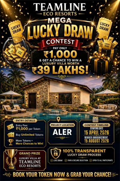 ఈ రిసార్ట్స్లో విల్లా గెలుచుకునేందుకు Teamline Eco Resorts ప్రత్యేకంగా మెగా లక్కీడ్రాను ఆఫర్ చేస్తోంది. కేవలం రూ.1,000 టోకెన్ కొనుగోలుతో ఏకంగా రూ.39 లక్షల లగ్జరీ విల్లాను సొంతం చేసుకునే అవకాశం కల్పిస్తున్నారు. ఇందులోని విజేతను ఆగస్టు 15, 2026న ప్రకటిస్తామని నిర్వహకులు ప్రకటనలో తెలిపారు.