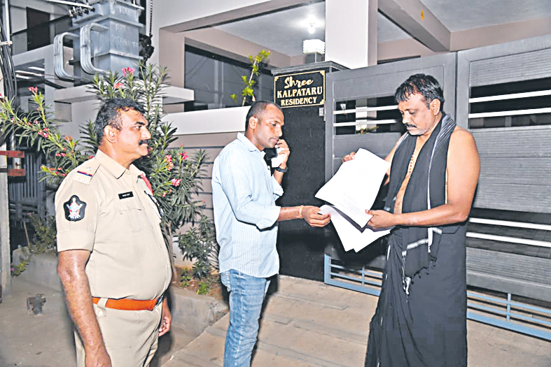 మస్తాన్రెడ్డికి నోటీసులు అందజేస్తున్న పోలీసులు