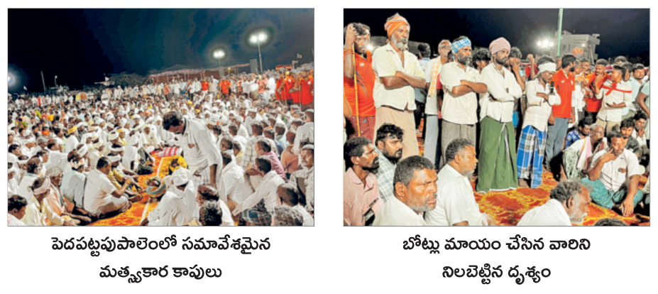 ప్రధానంగా బోట్ల మాయంకు సంబంధించి ముగ్గురు వ్యక్తులపై తీర్పుతో పాటు అందుకు కారణమైన వారిపై కూడా చర్యలు తీసుకోవాలని, మత్స్యకారుల సమస్యల పరిష్కారం కోసం నిర్ణయాలు తీసుకోవాలని ఈ సమావేశం ఏర్పాటు చేశారు. దాదాపు 164 గ్రామాలకు చెందిన 1,500 మందికిపైగా మత్స్యకార కాపులు, మత్స్యకారులు పాల్గొన్నారు. హార్బర్లో బోట్లు మాయం చేసిన తోటయ్య, జాలిరెడ్డి, కొండూరు పోలిశెట్టిని సమావేశంలో హాజరుపరిచారు.