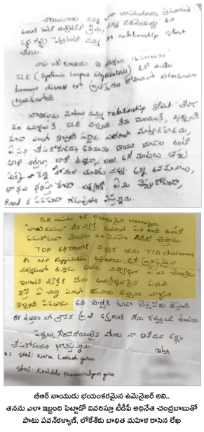 బీఆర్ నాయుడితో నా సంబంధం మొదలైన తర్వాత నా కుమార్తెకు ఆటో ఇమ్యునో డిసీజ్ (ఎస్ఎల్ఇ) వచ్చింది. ఇప్పుడు నా కుమార్తె జీవన్మరణ పోరాటం చేస్తోంది. బీఆర్ నాయుడు నోటికొచ్చినట్లు మాట్లాడుతూ, బూతులు తిడుతూ నీకు తాళి కట్టానా? అని పదే పదే ప్రశ్నిస్తూ నన్ను నీచంగా చూస్తున్నారు. ఇన్నాళ్లూ బాధలు భరిస్తూ వచ్చా. నేను టీడీపీ అభిమానిని కావడంతో నాయుడిని రోడ్డున పడేయడం ఇష్టం లేక ఫిర్యాదు చేయలేదు. ఈ ఉత్తరంలో నేను రాసిన ప్రతి అక్షరానికి కట్టుబడి ఉన్నా..’’
