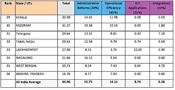 ఏపీ పోలీసు శాఖ 100 పాయింట్లకు గానూ కేవలం 16 పాయింట్లే తెచ్చుకుని 36 స్థానానికి పడిపోవడం గమనార్హం. అయితే మావోయిస్టులను కట్టడి చేశామని, రాష్ట్ర చరిత్రలో తొలిసారిగా దాదాపు 50 మందిని పట్టుకున్నామని ఏపీ పోలీసు ఉన్నతాధికారులు గొప్పలు చెప్పుకోవడంపై విస్మయం వ్యక్తమవుతోంది. నిజానికి ఇదంతా కేంద్ర ప్రభుత్వ కనుసన్నల్లో, కేంద్ర బలగాల ద్వారా జరిగిందని.. ఏపీ పోలీసుల ద్వారా అరెస్టును మాత్రమే చూపించారని పరిశీలకులు పేర్కొంటున్నారు.