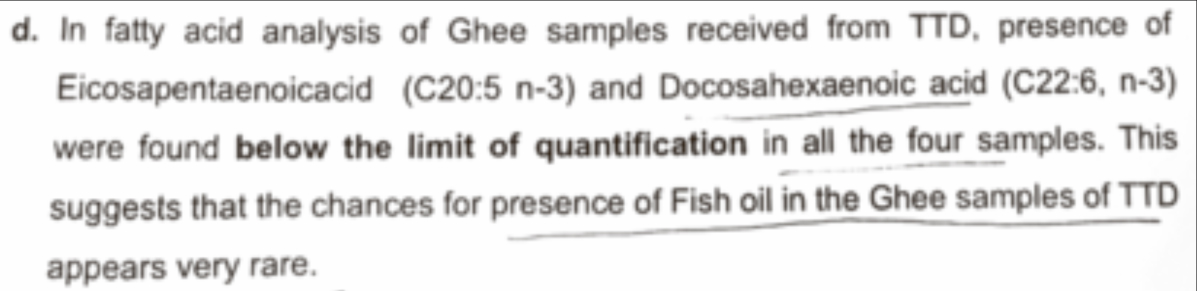 తిరుమల లడ్డూల తయారీకి ఉపయోగించిన నెయ్యిలో చేప నూనె కలిసే అవకాశం లేనేలేదని ఎన్డీడీబీ పరీక్షల్లో వెల్లడైందని చార్జిషీట్లో సీబీఐ సిట్ పేర్కొన్న అంశం