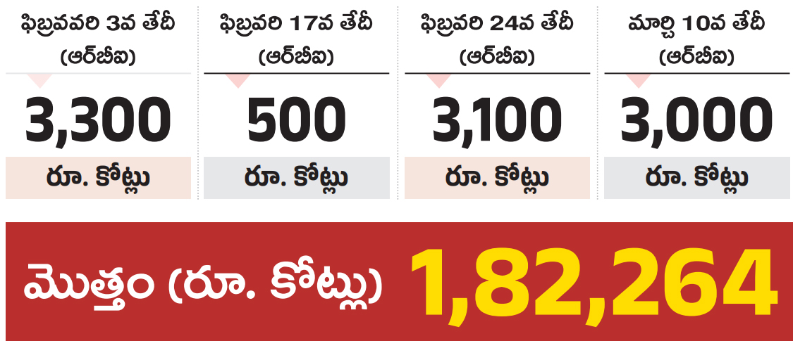 ⇒ 2024–25 ఆర్థిక సంవత్సరంలో చంద్రబాబు సర్కారు బడ్జెట్ అప్పు రూ.81,597 కోట్లు చేసినట్లు కాగ్ గణాంకాలు బహిరంగంగా వెల్లడించాయి. ఈ గణాంకాలు కాగ్ అధికారిక వెబ్సైట్లో అందరికీ అందుబాటులో ఉన్నాయి. అలాగే 2025–26 ఆర్థిక సంవత్సరంలో అంటే ఈ ఏడాది ఫిబ్రవరి 10వ తేదీ నాటికి బడ్జెట్లో రూ.1,00,667 కోట్లు అప్పు చేసినట్లు కాగ్తో పాటు ఆర్బీఐ