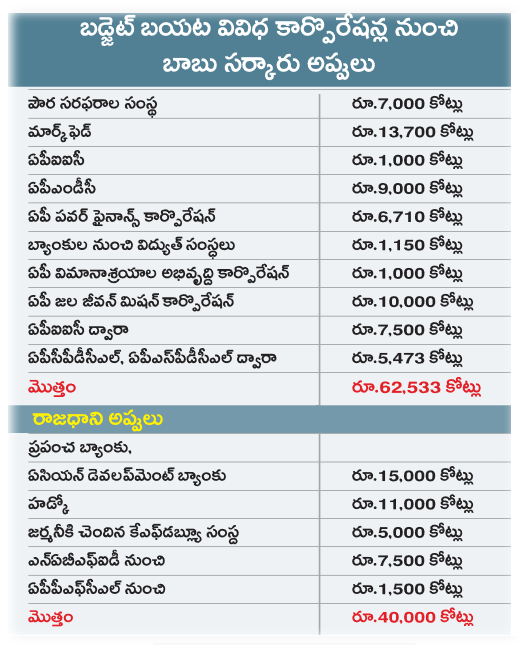 బడ్జెట్ బయట వివిధ కార్పొరేషన్ల నుంచి బాబు సర్కారు అప్పులు
