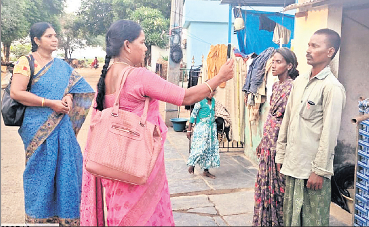 ఫొటో క్యాప్చర్ చేస్తున్న ఉపాధి సిబ్బంది