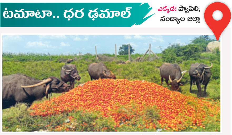 మార్కెట్లో 25 కిలోల బాక్సు రూ.100కు కూడా కొనుగోలు చేయడం లేదని పొలాల్లోనే పశువులకు వదిలేసిన టమాటా పంట (ఫైల్)