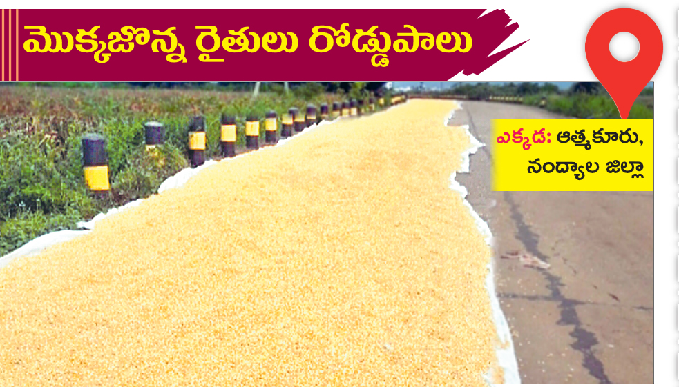 ప్రభుత్వం కొనుగోలు చేయకపోవడం, మార్కెట్లో ధర లేకపోవడంతో నంద్యాల జిల్లా ఆత్మకూరులో రోడ్డు పక్కనే ఆరబెట్టిన మొక్కజొన్న పంట (ఫైల్)