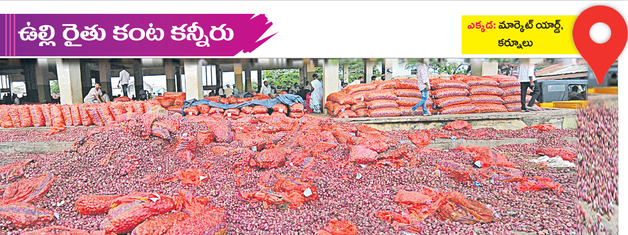 క్వింటా రూ.200లకు కూడా కొనుగోలు చేసేందుకు వ్యాపారులు ముందుకు రాకపోవడం, ప్రభుత్వం పట్టించుకోకపోవడంతో కర్నూలు వ్యవసాయ మార్కెట్ యార్డులోనే రైతులు పడేసిన ఉల్లిపాయలు (ఫైల్)