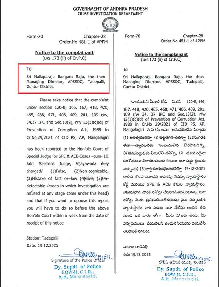 ఇప్పుడు మాత్రం ఆధారాలు లేవంటూ సీఐడీ ‘పచ్చ’ పాట.. కేసు క్లోజ్ చేయడంపై అప్పటి స్కిల్ కార్పొరేషన్ ఎండీకి నోటీసులు