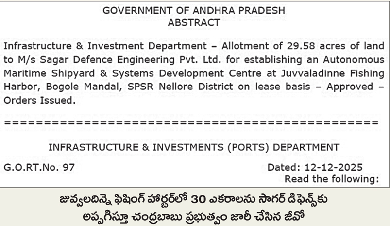 సాగర్ డిఫెన్స్కు కేటాయింపు.. మచిలీపట్నం హార్బరు వద్ద షిప్ బిల్డింగ్ యూనిట్కు సైతం టెండర్లు