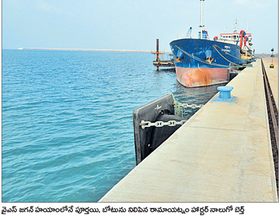 రాష్ట్రంలో పోర్టు ఆధారిత పారిశ్రామికాభివృద్ధి కోసం వైఎస్ జగన్ ప్రభుత్వం రామాయపట్నం, మచిలీపట్నం, కాకినాడ సెజ్, మూలపేట వద్ద 4 కొత్త పోర్టులతో పాటు 10 ఫిషింగ్ హార్బర్లు, ఆరు ఫిష్ల్యాండ్ సెంటర్ల అభివృద్ధికి శ్రీకారం చుట్టింది. ఈ ప్రాజెక్టులకు అన్ని రకాల అనుమతులు సాధించి ఎక్కడా మధ్యలో పనులు ఆగకుండా పూర్తిస్థాయిలో నిధులు సమకూర్చి ప్రారంభించింది. 2024 ఎన్నికల నాటికే రామాయపట్నం పోర్టు 90 శాతానికిపైగా పూర్తయింది. బల్క్ కార్గో బెర్త్ పూర్తి స్థాయిలో సిద్ధమైంది. జువ్వలదిన్నె ఫిషింగ్ హార్బర్ నిర్మాణం పూర్తయింది. దీనిని 2024 ఆగస్టు 30న ప్రధాని నరేంద్ర మోదీ ప్రారంభించారు. అయినాసరే.. దాదాపుగా పూర్తయిన రామాయపట్నం పోర్టుతోపాటు ప్రధాని చేతుల మీదుగా ప్రారంభమైన జువ్వలదిన్నె హార్బర్ను అందుబాటులోకి తేకుండా చంద్రబాబు నిలిపివేశారు. రామాయపట్నం పోర్టు కార్యకలాపాలు ప్రారంభం కాకపోవడంతో ఆ ప్రాంత పారిశ్రామిక అభివృద్ధి కుంటుపడింది.