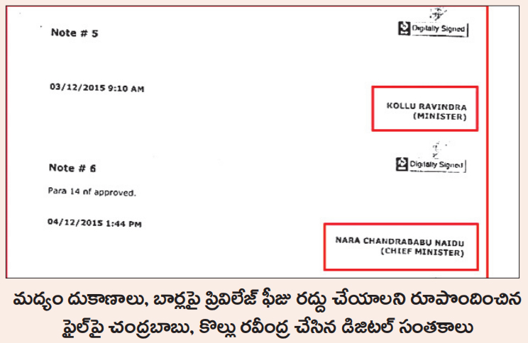 2014–19 మధ్య మద్యం విధానం ముసుగులో చంద్రబాబు యథేచ్ఛగా అవినీతికి పాల్పడ్డారు. 2012 నుంచి అమలులో ఉన్న ప్రివిలేజ్ ఫీజును నిబంధనలకు విరుద్ధంగా రద్దు చేశారు. ఆర్థిక శాఖ, కేబినెట్ ఆమోదం లేకుండానే చాపకింద నీరులా పన్నాగాన్ని అమలు చేశారు. చంద్రబాబు ఆమోదంతోనే ప్రివిలేజ్ ఫీజును రద్దు చేస్తూ గుట్టుగా జీవో జారీ అయ్యింది. దాదాపు 200 రకాల బ్రాండ్లను మార్కెట్లో ప్రవేశపెట్టి మద్యం ప్రియుల ఆరోగ్యంతో చెలగాటమాడింది చంద్రబాబు ప్రభుత్వమే. రాష్ట్రంలో 20 మద్యం డిస్టిలరీలు ఉండగా, వాటిలో 14 డిస్టిలరీలకు చంద్రబాబు ప్రభుత్వమే