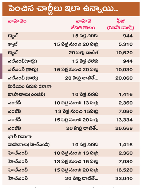 వాహనాల ఫిట్నెస్ చార్జీలు భారీగా పెంచిన బాబు సర్కారు