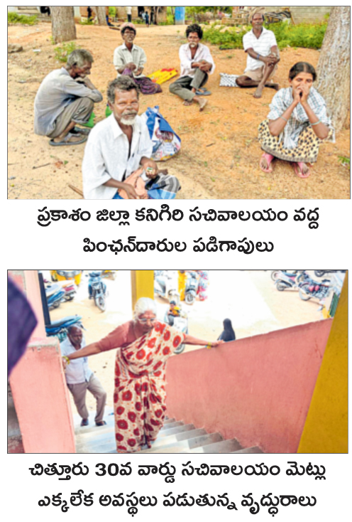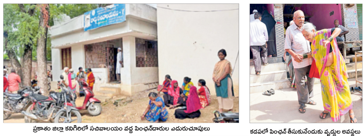 ఈ ఏడాది ఇంటి పన్నులు 100 శాతం వసూలు చేయాలని కూటమి సర్కారు ఆదేశించడంతో పింఛన్ల డబ్బుల నుంచి దాన్ని మినహాయించుకుంటున్నారు. పింఛన్ డబ్బులే తమకు జీవనాధారమని, నెలంతా వాటితోటే గడపాలని, మందులకూ అవే దిక్కని వృద్ధులు ఆక్రోశిస్తున్నారు. గత ప్రభుత్వంలో అవ్వాతాతలకు గుడ్ మార్నింగ్ చెప్పి మరీ ఇంటి వద్దే పెన్షన్లు ఇచ్చిన వలంటీర్ల వ్యవస్థను కక్షపూరితంగా రద్దు చేసిన చంద్రబాబు సర్కారు సచివాలయాల వ్యవస్థను కూడా పూర్తిగా నీరుగార్చింది.