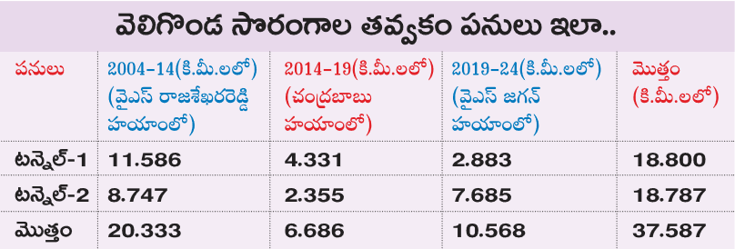 2014–19 మధ్య చంద్రబాబు అధికారంలో ఉండగా వెలిగొండ సొరంగాల్లో తవ్వింది కేవలం 6.686 కి.మీ.