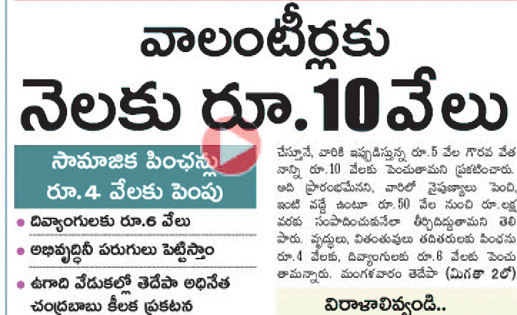 వైఎస్సార్సీపీ ప్రభుత్వంలో 2,71,167 మంది వలంటీర్లు ఉండగా వారికి వేతనాల కింద ఏడాదికి రూ.1,500 కోట్లు చెల్లించినట్లు బడ్జెట్ సమావేశాల సందర్భంగా అసెంబ్లీకి సమర్పించిన ద్రవ్య విధాన పత్రంలో చంద్రబాబు సర్కారు తెలిపింది. మరోపక్కతమకు ఇష్టంలేని ఔట్ సోర్సింగ్ ఉద్యోగులను తొలగించేసింది. గత ప్రభుత్వంలో ఔట్ సోర్సింగ్ ఉద్యోగులు 96,675 మంది ఉండగా చంద్రబాబు సర్కారు అసెంబ్లీకి సమర్పించిన ద్రవ్య విధాన పత్రంలో వారి సంఖ్య గతేడాది డిసెంబర్ నాటికి 87,681కి తగ్గిపోయినట్లు తెలిపింది.