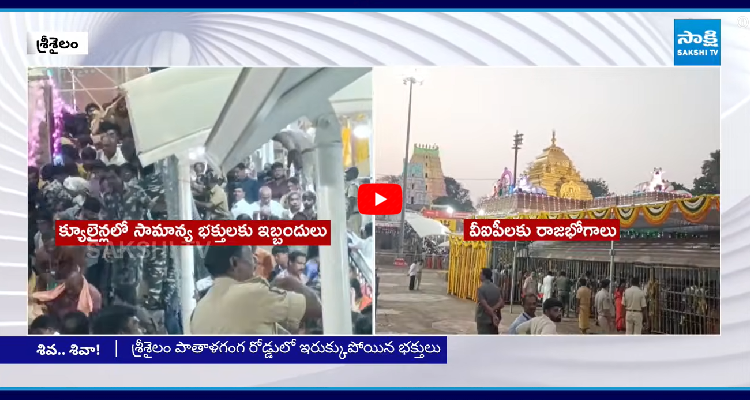 శ్రీశైలం మల్లికార్జున స్వామిని దర్శించుకునేందుకు భక్తులు పాతాళగంగ రోడ్డులో గంటల తరబడి ఇరుక్కుపోయారు. దీంతో తొక్కిసలాట జరిగింది. ప్రమాదకరమైనప్పటికీ రోప్వే దారిలోనే భక్తులు నడుచుకుంటూ వెళ్లాల్సివచి్చంది. పాతాళగంగలో పుణ్యస్నానాలు ఆచరించిన మహిళా భక్తులకు సరిపడినన్ని దుస్తులు మార్చుకునే గదులు ఏర్పాటు చేయకపోవడంతో అవస్థలు ఎదుర్కొన్నారు. ఆలయంలో సిద్ధం చేసిన మల్లన్న లడ్డూ ప్రసాదాలను కౌంటర్లకు తరలించే క్రమంలో ట్రేలు కిందపడి లడ్డూ ప్రసాదం నేలపాలైంది. ఈ ఘటనను భక్తులు మహా అపచారంగా భావిస్తున్నారు. మరోవైపు పాగాలంకరణ దర్శనం సామాన్య భక్తులకు అందని ద్రాక్షగానే మిగిలింది. కేవలం వీఐపీలకే ప్రాధాన్యత ఇవ్వగా.. భక్తులను ప్రతిచోటా పోలీసులు అడ్డుకున్నారు. భక్తులు ఒక దశలో ‘ఈఓ డౌన్ డౌన్’ అంటూ పెద్దఎత్తున నినాదాలు చేశారు.