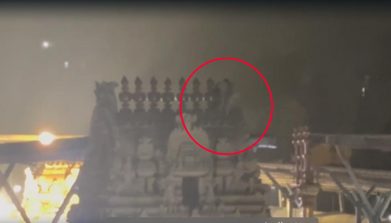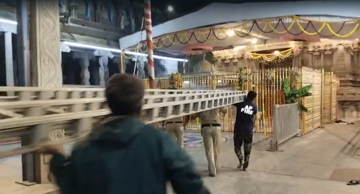 అది గమనించిన విజిలెన్స్ సిబ్బంది కిందకు రావాలంటూ బతిమాలారు. చేతిలో రాడ్తో ఆలయ కలశాలను ధ్వంసం చేస్తానంటూ బెదిరించాడు. దీంతో ఫైర్ సిబ్బందిని రప్పించి గోపురానికి నిచ్చెనలు వేసి తాళ్లతో బంధించి బలవంతంగా కిందకు దించారు. ఈ చర్యకు పోలీసులు మూడు గంటలపాటు శ్రమించాల్సి వచ్చింది. అదే సమయంలో.. అర్ధరాత్రి కవరేజ్కు వచ్చిన మీడియాపై ఫైర్ సిబ్బంది దురుసుగా ప్రవర్తించారు.