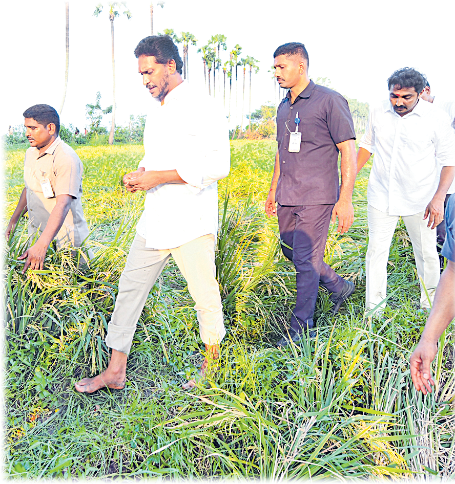 ఇప్పుడు ఇన్పుట్ సబ్సిడీ ఇస్తే ధాన్యం ప్రభుత్వం కొనుగోలు చేయదని అధికారులు చెబుతున్నారని, ఇదెక్కడి అన్యాయమో తమకు అర్ధం కావటం లేదని వాపోయాడు. ఆకుమర్రు లాకు సమీపాన నేలకొరిగిన వరి పొలాలను పరిశీలించిన అనంతరం రైతులు సాయిబాబు, గణేశన రమేష్ బాబు, దేసు ప్రసాద్తో వైఎస్ జగన్ మాట్లాడారు.