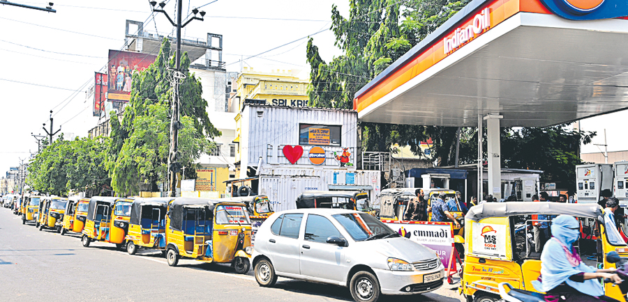 ⇒ రాష్ట్రంలో ఇంధన కొరత తీవ్ర రూపం దాల్చడంతో అది రవాణా రంగంపై ప్రతికూల ప్రభావం చూపుతోంది. రాష్ట్రం నుంచి దూర ప్రాంతాలకు వెళ్లే సరుకు రవాణా వాహనాలు దాదాపుగా నిలిచిపోయాయి. ప్రజా రవాణా వాహనాలు, ఆటోలు వంటివి సగానికి పైగా తిరగడం లేదు. ఈ నెలాఖరుకు ఇంధన ధరలు పెరుగుతాయన్న ప్రచారంతో సరఫరా ఆపేశారనే చర్చ జరుగుతోంది. అయితే ఇది కూడా వాస్తవం కాకపోవచ్చని, అలాగైతే పొరుగు రాష్ట్రాలకు ఎలా సరఫరా అవుతోందని డీలర్లు ప్రశ్నిస్తున్నారు.