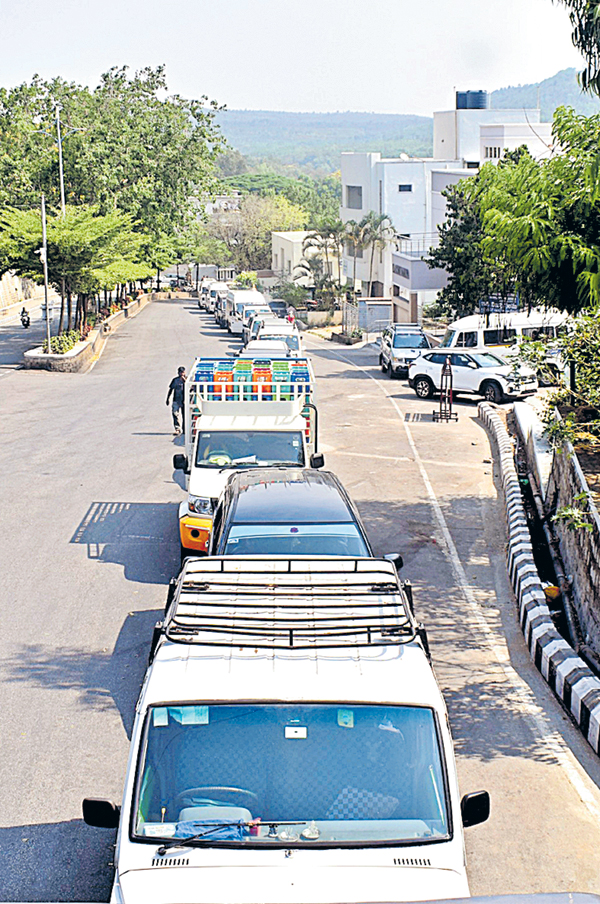 తిరుమలలోని హెచ్పీ బంకు వద్ద పెట్రోల్ కోసం బారులుతీరిన వాహనాలు
