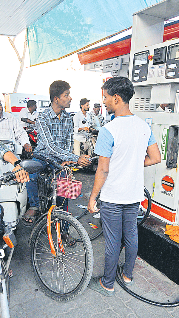 కర్నూలులోని నారాయణ పెట్రోల్ బంక్లో సైకిల్పై వచ్చి పెట్రోలు తీసుకెళ్తున్న యువకుడు